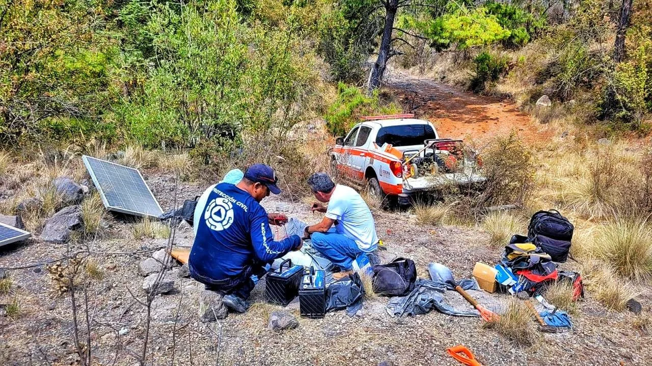 Personal de la Unidad Estatal de Protección Civil (UEPC) y de la Red Sísmica Telemétrica del Estado de Colima (RESCO), acudieron este martes a las inmediaciones del Volcán de Fuego de Colima, para brindar mantenimiento a la estación de monitoreo volcánico.