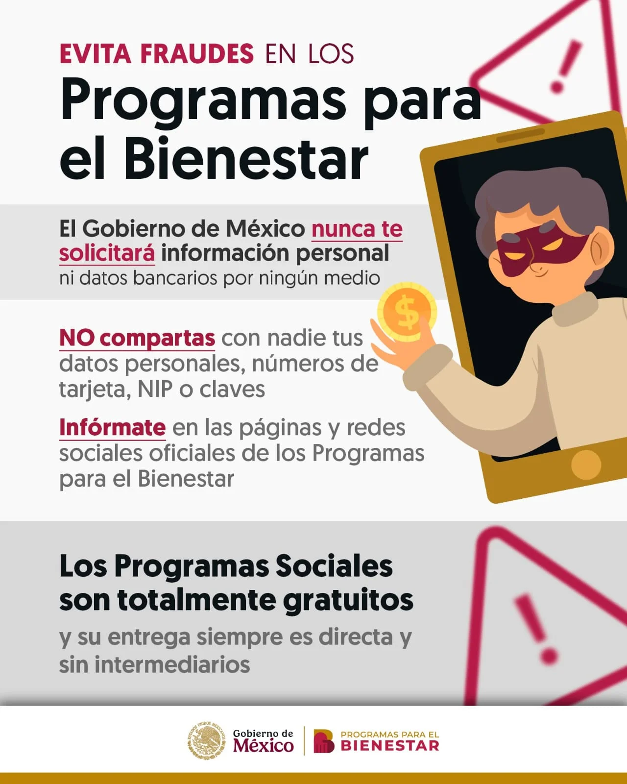 ❌ Nunca te solicitaremos datos bancarios, depósitos o dinero en efectivo para ningún trámite.