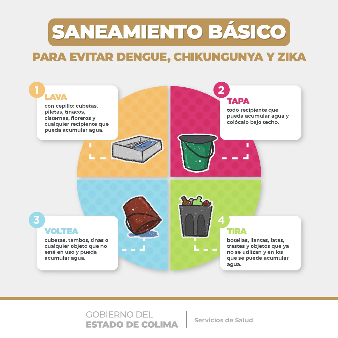 Es importante reforzar las medidas de saneamiento básico: lava, tapa, voltea y tira objetos en desuso. ¡Juntas y juntos podemos reducir la proliferación del mosquito transmisor del chikungunya, dengue o zika! ![]()