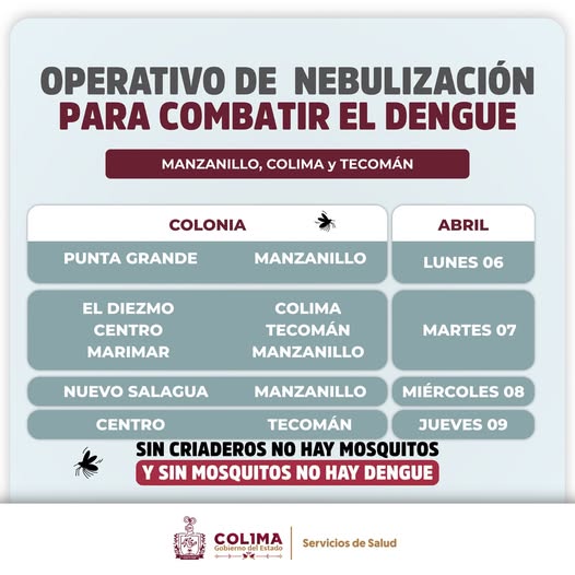 Con el inicio de las vacaciones de Pascua, la Secretaría de Salud Colima refuerza el Operativo Salud para el Turismo con jornadas de nebulización en playas y distintos puntos del estado. ![]()