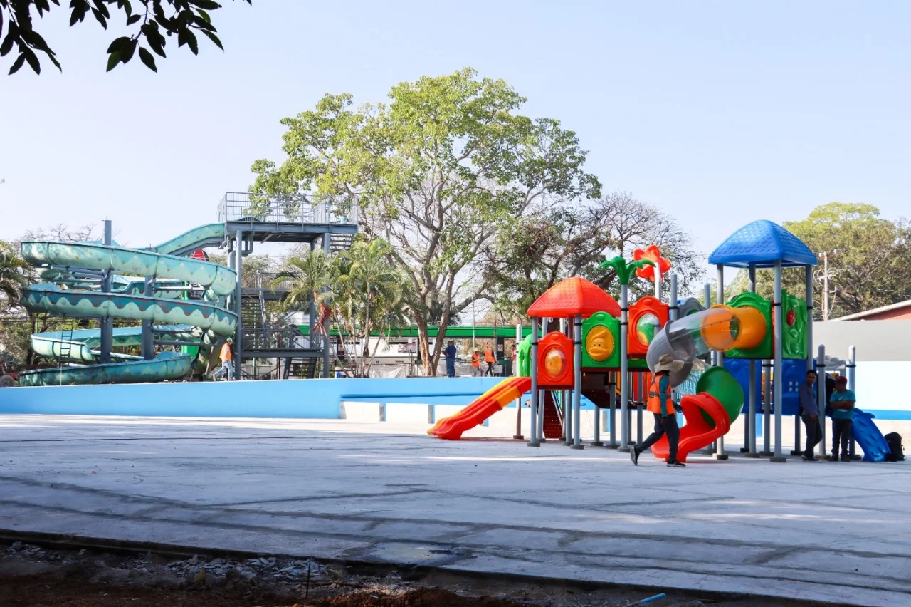 La amplia rehabilitación de este lugar emblemático para las familias colimenses, ubicado en el centro de la capital colimense, contempla la recuperación de los toboganes, la rehabilitación de las albercas y colocación de un juego acuático.