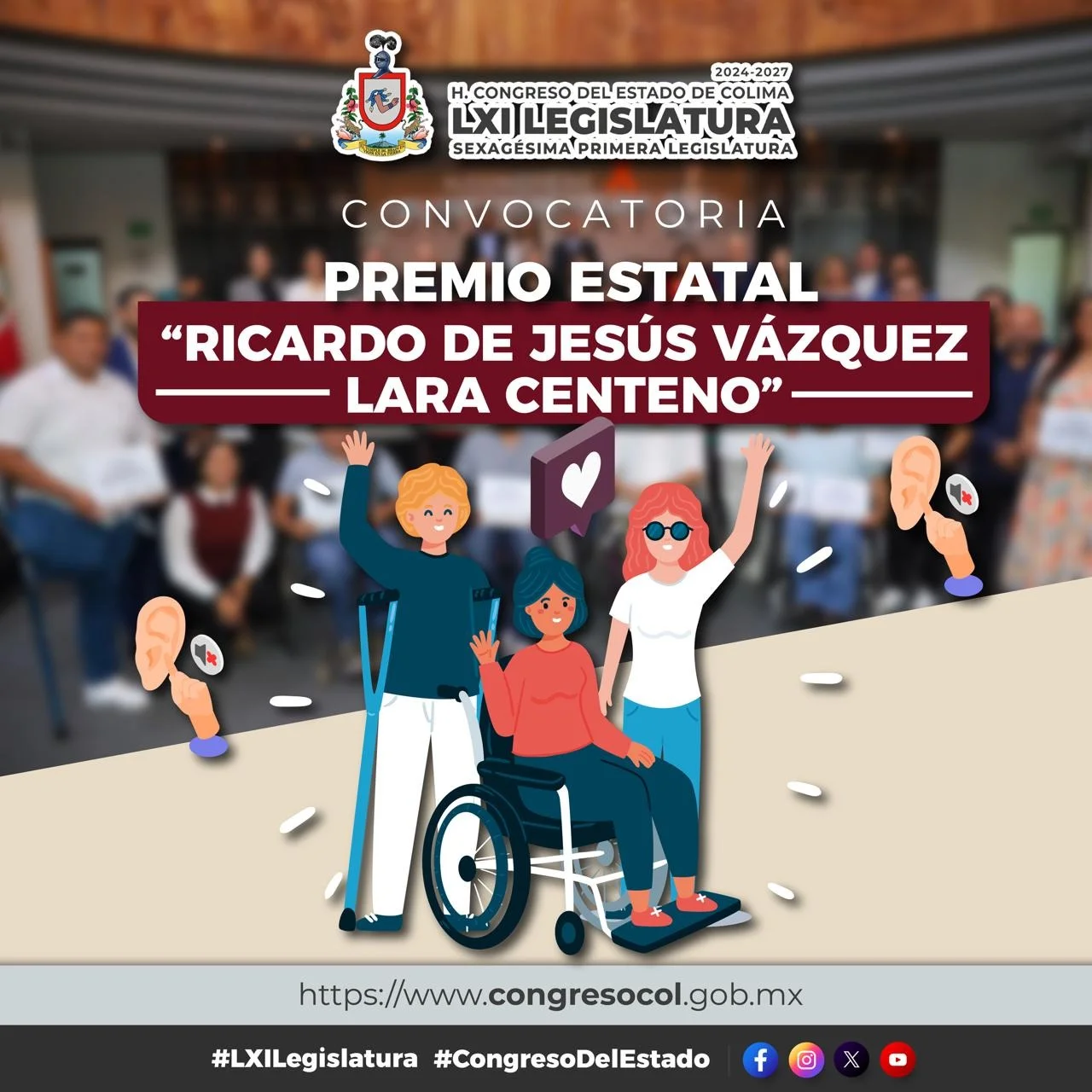 Agradeció al Instituto Colimense para la Discapacidad (INCODIS), por sumarse en la difusión de esta convocatoria, la cual puede ser consultada en: https://www.congresocol.gob.mx