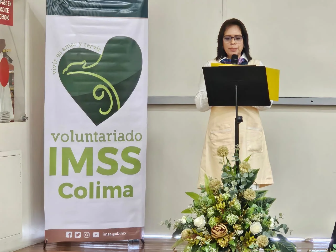 Con la presencia de la doctora Alejandra Aburto de Robledo, presidenta Honoraria del Voluntariado Nacional del IMSS, así como su equipo de la mesa directiva, la C. María Alicia Rodríguez Ochoa directora ejecutiva del Voluntariado IMSS en Colima, rindió su informe de actividades 2023.