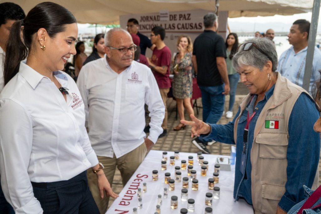 Al concluir las brigadas, la presidenta municipal participó en la Jornada de Paz realizada en el Malecón del Espíritu Santo, junto al Secretario Técnico Estatal de la Mesa de Paz de la Secretaría de Gobernación, Roberto García Avendaño.