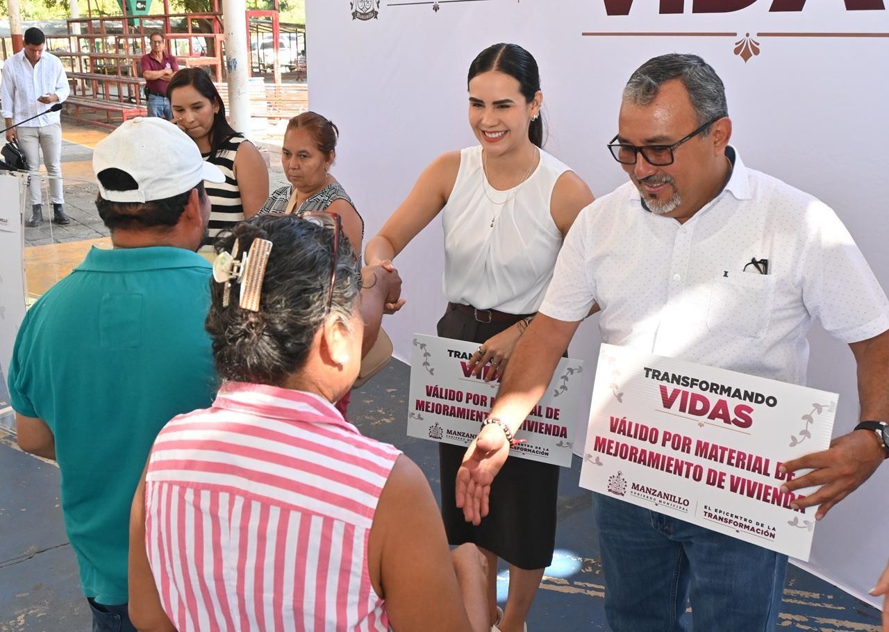A través del programa Transformando Vidas, la presidenta municipal de Manzanillo, Rosa María Bayardo Cabrera, realizó la entrega de materiales para el mejoramiento de viviendas en beneficio de 34 familias manzanillenses.