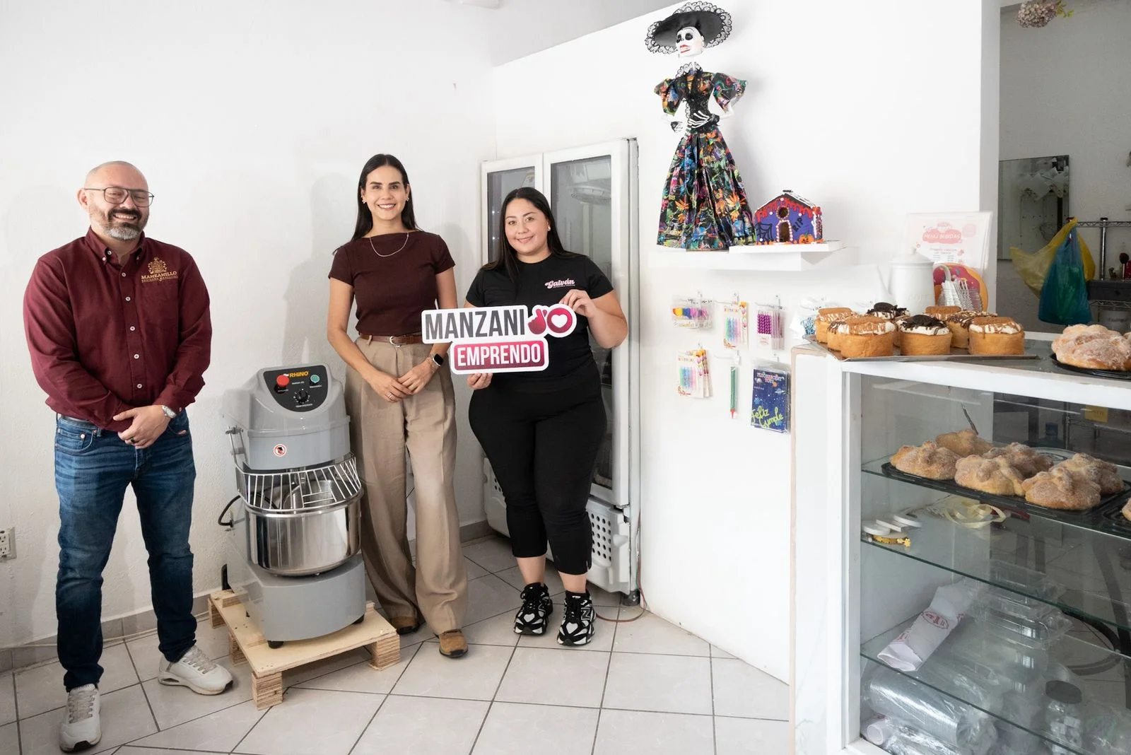 La alcaldesa realizó la primera entrega en Valle de las Garzas a Andrea Galván, joven de 24 años, propietaria de Pastelería Galván, quien recibió como apoyo una batidora industrial que le permitirá incrementar su producción de pasteles y panes.