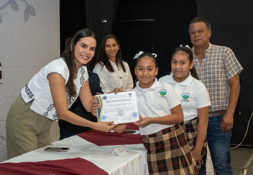 Este miércoles, la presidenta municipal de Manzanillo, Rosa María Bayardo Cabrera, entregó reconocimientos a 31 escuelas que, durante tres meses, participaron en dos programas de la Dirección de Seguridad Pública, a través de Prevención Social del Delito: ‘Policías Previniendo el Delito’ y ‘Educación para Resistir el Abuso de las Drogas y No a la Violencia’.