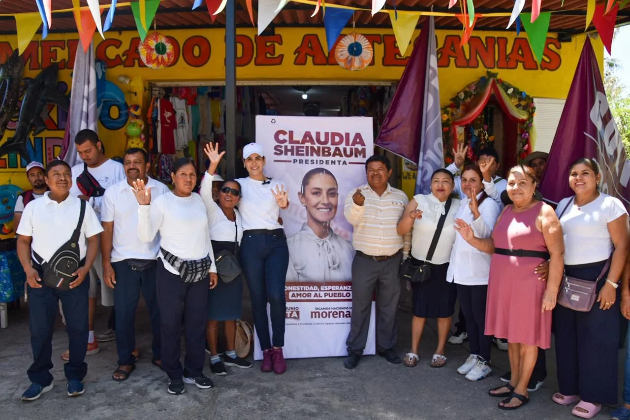 Rosi Bayardo visitó a los comerciantes del mercado cinco de mayo en el centro histórico de Manzanillo y los de artesanías “México Lindo” y “Mar Azul”, en Miramar, para promover el voto en favor de la candidata presidencial de Morena-Pvem-Pt, Claudia Sheinbaum y los candidatos de la 4t.