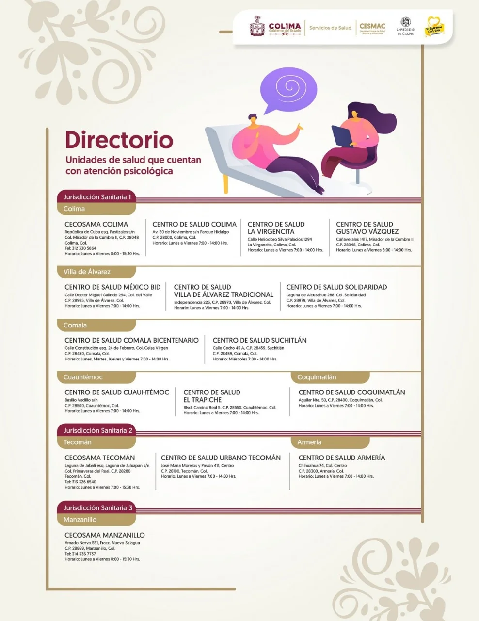 En los Servicios de Salud se proporciona atención psicológica en Centros de Salud y en los Centros Comunitarios de Salud Mental y Adicciones de Colima, Manzanillo y Tecomán. #OperaciónSaludColima