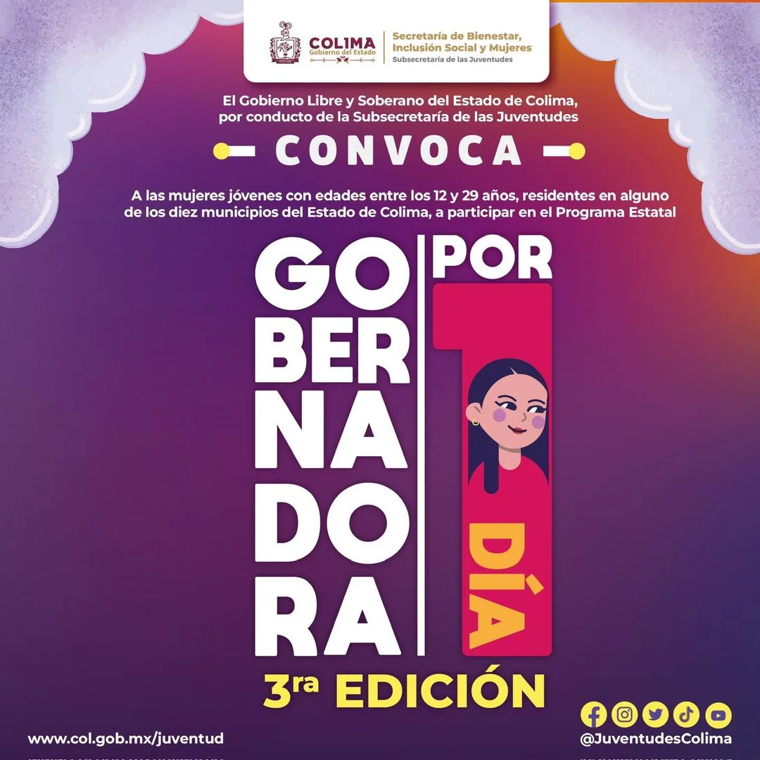La tercera edición ya está aquí, y tú puedes ser parte. Si tienes entre 12 y 29 años, participa en esta convocatoria para destacar el liderazgo de las niñas y mujeres jóvenes de Colima. ¡Tienes hasta el 10 de noviembre para inscribirte!