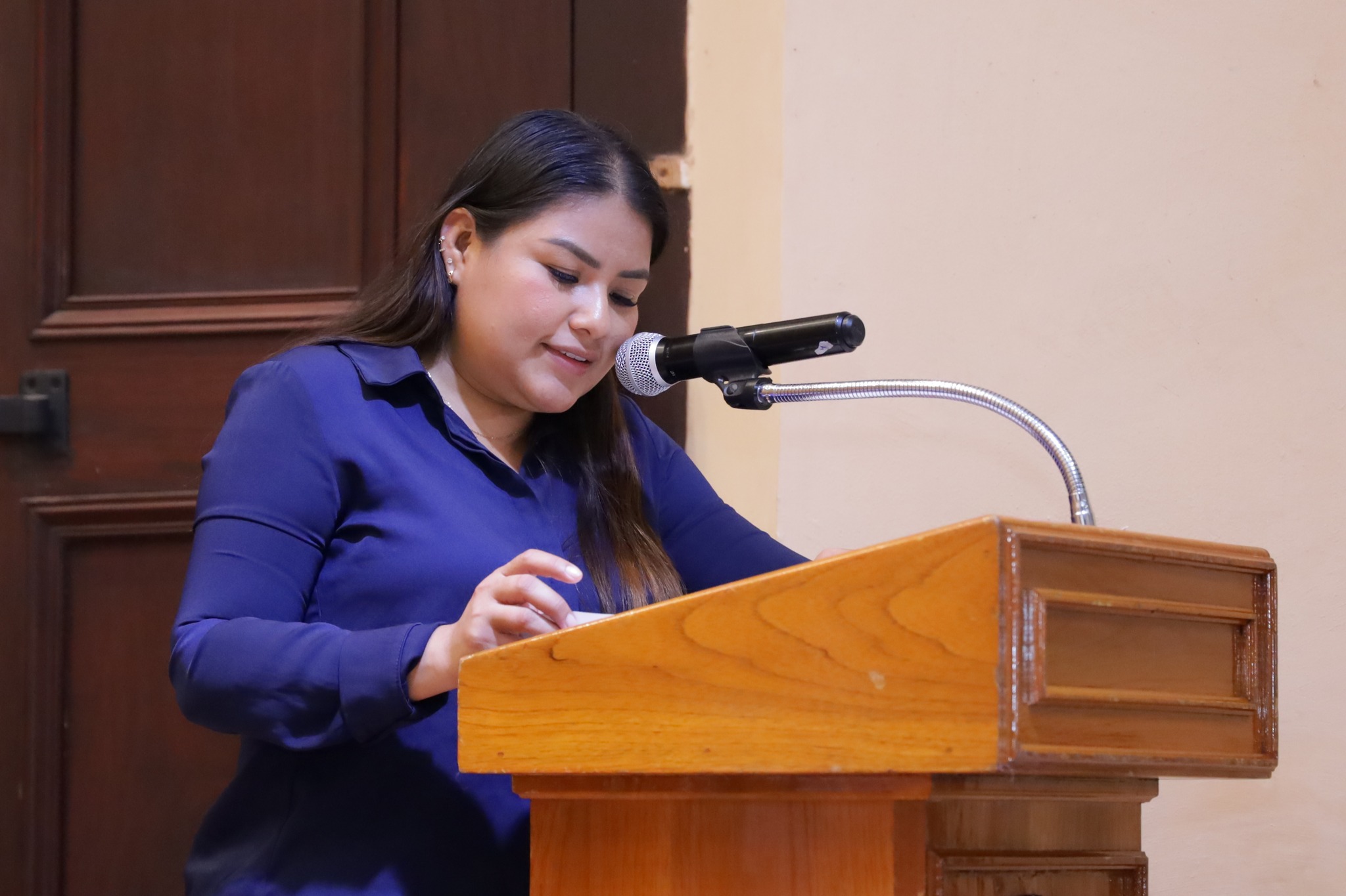 La diputada Dulce Huerta Araiza da lectura al dictamen relativo a la Minuta por la que se reforma el artículo 127 de la Constitución Política de los Estados Unidos Mexicanos, en materia de límite a las jubilaciones y pensiones de las entidades públicas.