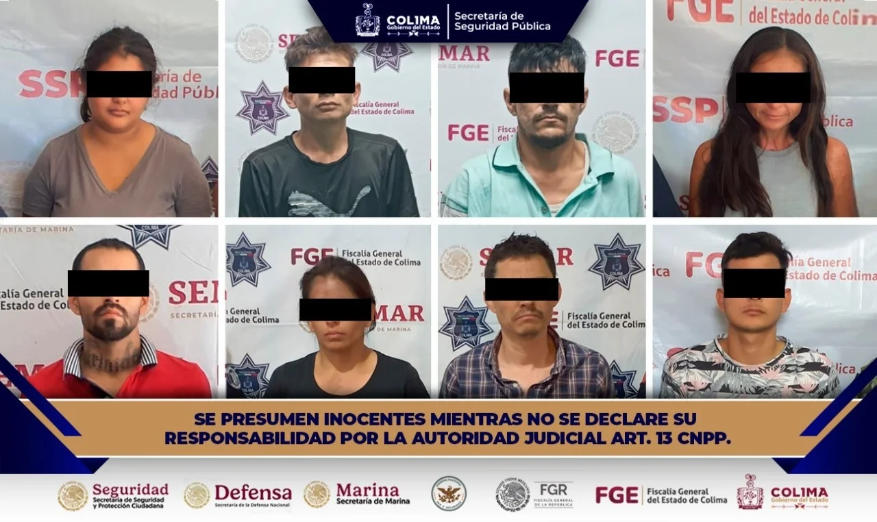 Derivado de los operativos de patrullajes preventivos y disuasivos, agentes de la Policía Estatal Preventiva, en coordinación con elementos de la Secretaría de Marina Armada de México (Semar), detuvieron en distintos eventos a ocho personas en los municipios de Colima, Armería, Tecomán y Manzanillo, por su probable participación en delitos contra la salud, informa la Secretaría de Seguridad Pública (SSP) del Gobierno del Estado de Colima.