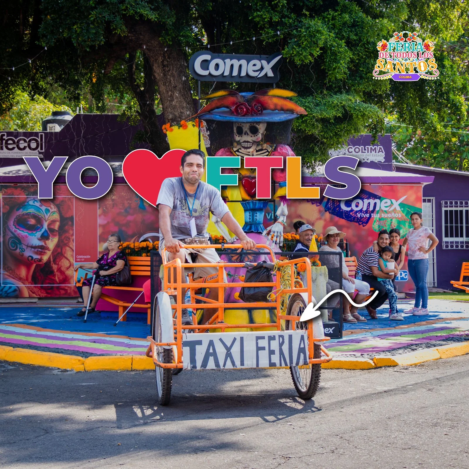 Por segundo año, en la Feria de Todos los Santos Colima 2024 se cuenta con el servicio de ‘Taxi Feria’; se trata de un triciclo en el cual se transporta mercancía o incluso a personas que desean llegar a algún punto en particular dentro del recinto ferial.